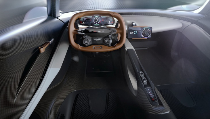 La apertura de puertas es como en el Valkyrie, en forma de élitros hacia adelante, mordiendo también el techo, y todo el coche ha sido diseñado bajo la llamada “ergonomía de Apex”, basada en la perfecta alineación entre la línea central de la espalda, el volante y los pedales, y la cuidadosa colocación de los demás elementos en la cabina para facilitar esta disposición centrada en el conductor. Además, una pantalla montada en la columna de dirección permite una visualización óptima sin estorbos detrás del volante, y los sistemas de infoentretenimiento utilizan la tecnología de conectividad «bring your own» a través de un teléfono móvil, en beneficio de la máxima eficiencia, funcionalidad y flexibilidad.