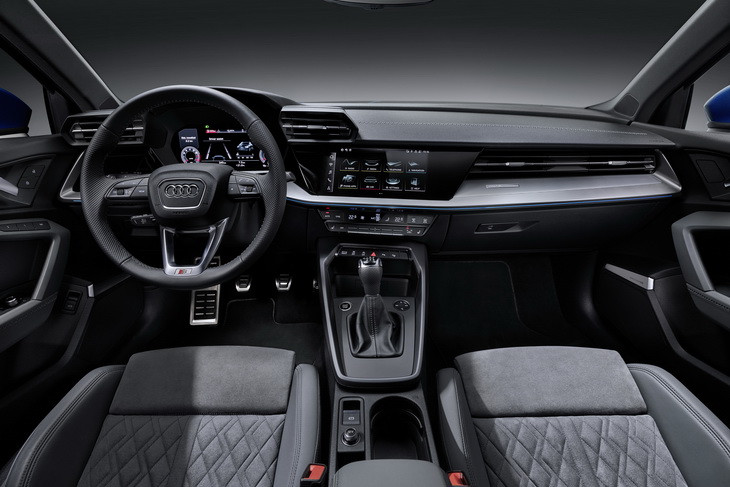 Luego, entre las diversas mejoras generales, destaca el acoplamiento mediante embrague multidisco para las versiones con tracción quattro, el control electrónico de estabilidad (ESC) con reparto vectorial del motriz por rueda, y la dirección con asistencia y desmultiplicación variables. Los faros de diodos serán de serie en todas las versiones (pero los Matrix LED de iluminación variable son siempre opcionales), mejorados ahora con una matriz de píxeles compuesta por diodos en disposición de 3 x 5, que crean la especial firma lumínica diurna de este nuevo A3. Y la radio digital DAB+ es siempre de serie, con la radio online o híbrida disponible como opción.