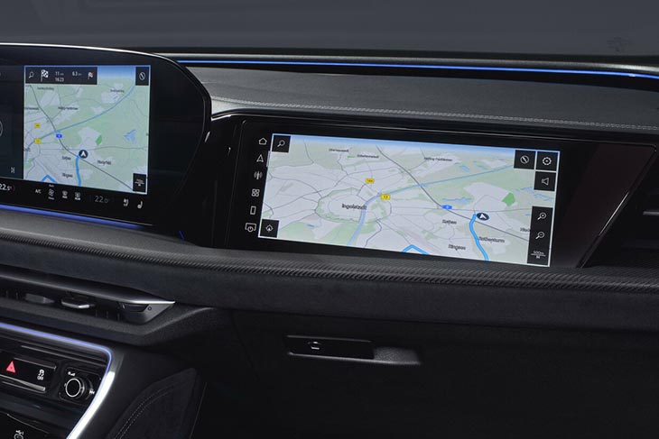 Al volante llama la atención el puesto de conducción Digital Stage, con las pantallas como protagonistas (con dos conjuntas bajo una cubierta transparente curvada, una para el cuadro de instrumentos de 11,9” y otra la multimedia MMI Touch de 14,5”, ambas de diodos orgánicos) quedando en opción una tercera pantalla (MMI Passenger Display) de 10,9” para que el acompañante delantero se sirva de ella sin distraer al conductor. Todo ello forma el Audi MMI Panoramic Display, concebido bajo una filosofía centrada en lo humano con sus elementos enfocados al confort y la funcionalidad.
