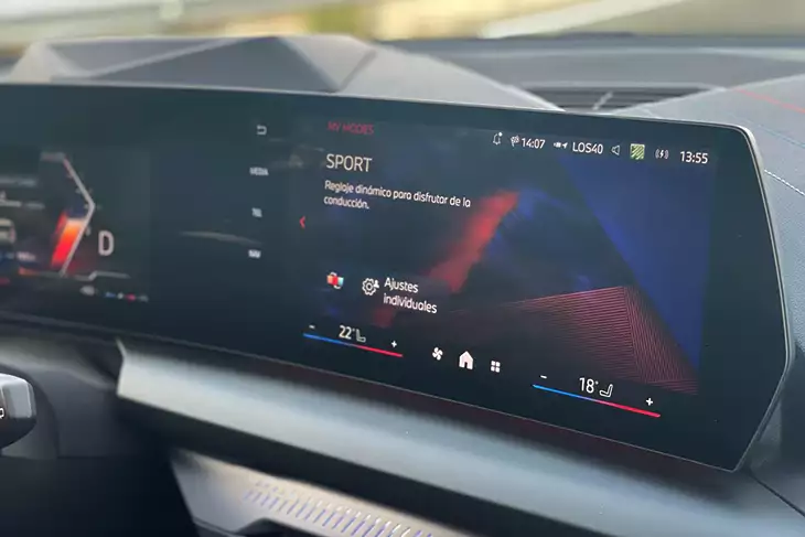 Pero el verdadero protagonista en el interior de esta nueva generación es la adopción de un nuevo salpicadero, sin botones físicos, inspirado en el introducido en sus hermanos X1 y X2. Dotado de un tacto muy suave y una calidad de acabados de tipo Premium (también en el revestimiento de las puertas), puede llevar tres finas costuras con los colores M cruzadas en el lado del acompañante y embellecedores en aluminio retroiluminados (con varios colores) sobre las estrechas salidas de aire, incrementando la percepción de calidad.
