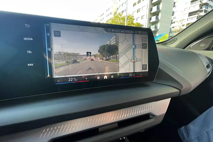 Lo preside una gran pieza curva que integra dos pantallas, una de 10,25 pulgadas para la instrumentación y otra de 10,7 pulgadas para el sistema de infoentretenimiento con la climatización bi-zona integrada siempre visible, con controles táctiles.