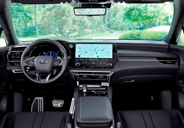 Además de cuadro digital, el nuevo RX incluye un sistema multimedia de nueva generación con pantalla multimedia táctil de 14”, con conectividad Apple CarPlay y Android Auto. También integra un asistente de voz y un sistema de navegación instalado de serie. Los asientos son cómodos y envolventes, especialmente los deportivos delanteros del nivel F Sport, de formas anatómicas, con una generosa consola con soporte para la recarga inalámbrica de teléfonos móviles y otros huecos portaobjetos, estando toda la zona iluminada y con una tapa de persiana para ocultar su contenido, y contando con 4 tomas USB (tres de tipo C y una normal), con dos de ellas dentro de la zona cubierta con tapa.