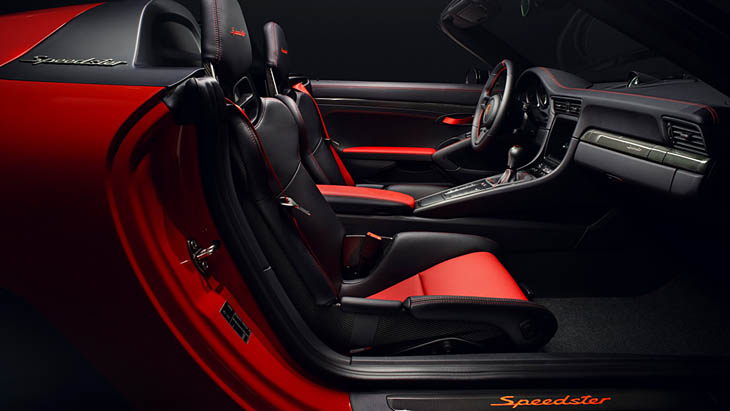 Como detalles de complemento, logotipos “Speedster” adornan los reposacabezas y el umbral de las puertas de carbono visto, además del cuentarrevoluciones central. Como el resto de instrumentos, éste tiene el fondo negro y la aguja blanca, con los dígitos y escalas en color verde, unas características que recuerdan a su famoso antepasado, el Porsche 356 Speedster. En la estructura transversal que hay detrás de los asientos se ha colocado una placa que hace referencia a la edición limitada, donde se muestra el número de esa unidad concreta de las 1.948 que se fabricarán del 911 Speedster.