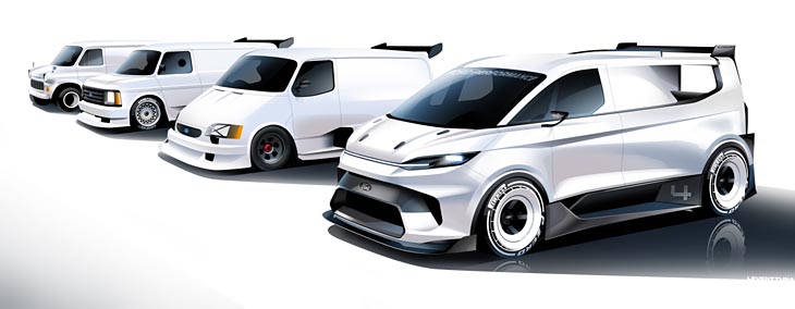 La tradición de las SuperVan dio comienzo en 1971 con una furgoneta Transit MK 2 con el motor del Ford GT40 V8 de 590 CV que ganó Le Mans y carrocería de fibra de vidrio. Más tarde se le montaría el motor Cosworth HB de 650 CV que montaban los Fórmula 1 que competían en ese momento.