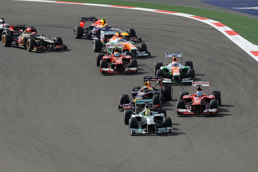 Por detrás de Vettel, mención especial merece Kimi Raikkonen, quien tras una pésima clasificación saliendo octavo, logró una remontada hasta auparse hasta el segundo puesto. El finlandés está que se sale, sólido como una roca, preciso como un reloj: lleva 21 carreras seguidas puntuando y 10 en el podio (con dos victorias). Y encima corrió en Bahrein aquejado de una reacción alérgica que le afectó en ojos y piel. Claro que también hizo remontada su compañero Grosjean: partió undécimo y acabó tercero. De esta forma y por increíble que parezca, un año después en el mismo circuito se repetía el mismo podio.