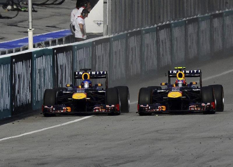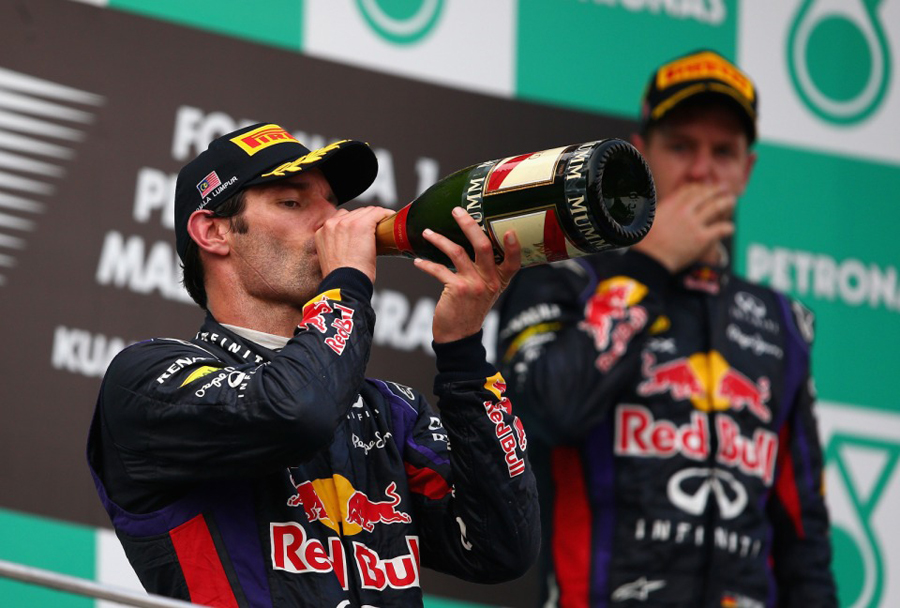 En el caso de Mark Webber, su celebración no pudo ser más agridulce. Cuando tenía el triunfo en la mano, que se había fraguado con una excelente carrera, partiendo de una buena salida –esta vez sí lo hizo bien- un desatado Sebastian Vettel, insaciable, caníbal del asfalto, no pudo contenerse y tras desobedecer órdenes directas del muro de la bebida energética, achuchó a Webber hasta la extenuación, provocando una lucha titánica, sin cuartel, poniendo en peligro la integridad de ambos monoplazas con un adelantamiento en la recta de meta rozando el muro a escasos milímetros del coche de Webber quien tuvo que ceder ante el ímpeto teutón. Era la vuelta 45, y Vettel con gomas nuevas medias contra las usadas blandas de Webber, empezó la caza y el acoso y derribo del australiano, quien con resistencia numantina aguantaba los azotes del vikingo. Los dos se pasaban mutuamente, corrían en paralelo, tomando riesgos innecesarios. “He sentido miedo. Mark ha sido un estúpido”, soltaba Vettel por radio cuando pasó a Webber rozando el muro del pit lane. En el muro de Red Bull debieron acordarse del episodio similar de Turquía 2010 cuando ambos se enzarzaron y acabaron chocándose entre ambos, dando un espectáculo dantesco visto desde su box, y provocando la risa incontenible de sus adversarios que veían como se comían entre ellos. En esta ocasión en la escudería energética no estaban dispuestos a presenciar semejante escena de nuevo. Ordenaron a Vettel que dejase a Webber usando las palabras claves que el propio Webber desveló después en el podio: “Multi 21, Seb, multi 21”, le dijeron por radio a Vettel. Las palabras mágicas de mantener el orden, mantener la posición, algo que de ninguna manera pueden ignorar los pilotos. Más antes ya le habían lanzado un misil a Vettel desde el muro: “No hagáis tonterías”, les dijeron viendo que ni uno ni otro iba a ceder en su lucha. Cierto es que Vettel pidió por radio que le ordenasen a Webber dejarle pasar: “Es muy lento, quitadlo de en medio”, dijo el alemán. Pero no hizo caso. “Eligió ignorar la orden”, espetó el director de Red Bull, Christian Horner, quien previamente lanzó una hondanada a Vettel nada más cruzar la meta como ganador: “Enhorabuena, aunque hay mucho que aclarar”.