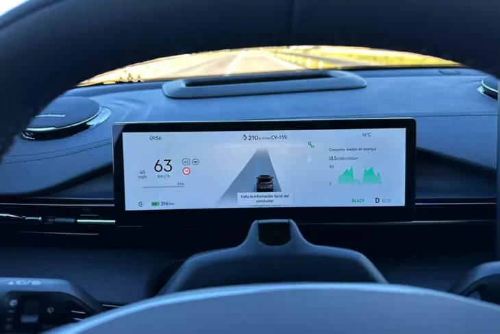 Disponemos de tres modos de conducción (Eco Confort y Sport), que van incrementando cada vez más la entrega de potencia. Sin embargo, el modo Eco va sobrado de fuerza y nos permite hacer todo el recorrido gastando unos 14,5 kWh/100 km.
