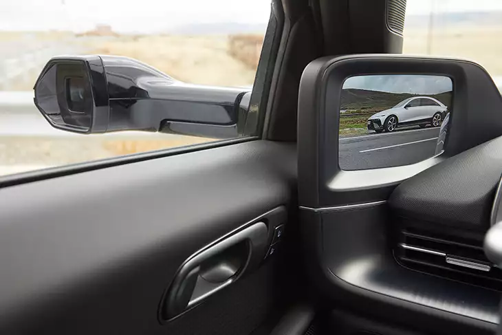En el interior también hay novedades. La plataforma E-GMP permite un piso completamente plano y una gran distancia entre ejes (2,95 m), lo que se traduce en un habitáculo amplio y confortable, contando además con un maletero de 446 litros de capacidad (401 el trasero y 45 el delantero). Los acabados presentan ahora una mejor calidad visual y táctil, con un nuevo volante de tres radios, una nueva consola con mandos físicos más accesibles y un sistema multimedia con dos pantallas panorámicas de 12,3 pulgadas y sendas pantallas de las cámaras que actúan como retrovisores.