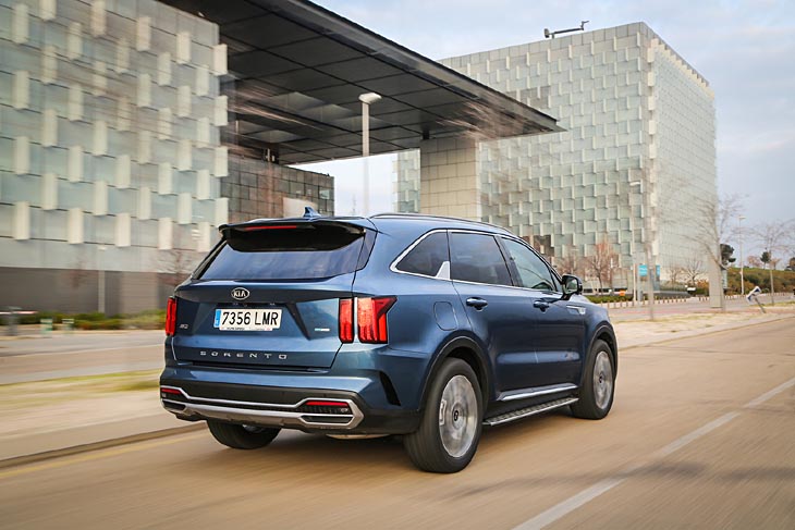 El Kia Sorento PHEV es la tercera versión del nuevo modelo presentado en 2020, tras el híbrido autorrecargable HEV y el diésel CRDi, siendo la segunda variante electrificada de la gama y la que tiene más potencia de las tres. Exteriormente solo añade una tapa de carga de electricidad en la aleta trasera derecha y el emblema «Eco plug-in» en el portón del maletero (eléctrico y de apertura ajustable en altura), incorporando de serie como su hermano híbrido llantas de 19″ con neumáticos 235/55, algo secas ante baches o badenes.