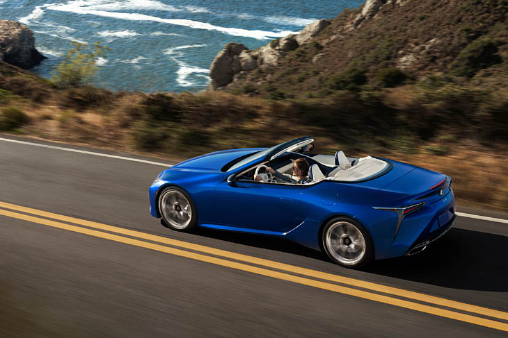 Es precisamente este carácter descapotable el que ha obligado a la vuelta al motor único de combustión, ya que procurar el espacio adecuado para guardar la capota y su motor suprime el dedicado a las baterías y sistema eléctrico del LC 500h, de modo que si se quiere un Lexus LC descapotable no puede ser híbrido, al menos por ahora. En cuanto a medidas, repite prácticamente las mismas del LC 500 Coupé, o sea 4,77 m de largo, 1,92 m de ancho y 1,35 m de alto, (sólo 1 cm más largo y medio cm más alto) siempre sobre la misma plataforma de 2,87 m de batalla.