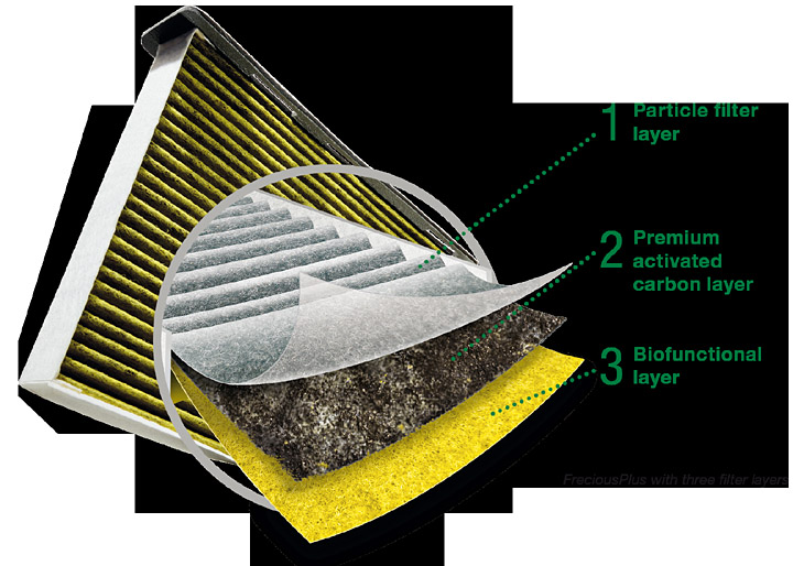 Este nuevo filtro se comercializa ya, estando disponible para varios modelos de Audi. La combustión del gasóleo de los motores diesel a altas temperaturas produce diversos contaminantes, como materias particuladas y óxidos de nitrógeno, los cuales son liberados al aire del exterior a través de los gases de escape. El aire del interior del vehículo suele estar a menudo más contaminado que el aire ambiente, y por ello la purificación total del aire exterior por medio de un filtro de aire de habitáculo es esencial, especialmente para los conductores habituales, los niños y quienes padecen alergias.