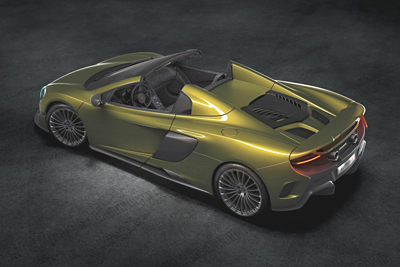 Por fuera el coche es muy atractivo con sus nuevas llantas de 19” delante y 20” detrás, de aleación forjada y las más ligeras según McLaren en la historia de sus modelos de calle. Hay además otros dos modelos opcionales en 20” para las 4 ruedas (uno de ellos con el diseño de 5 radios inicialmente visto en el 675 LT coupé), y también un paquete opcional de personalización (Club Sport Professional Pack) que añade varios elementos de carrocería en fibra de carbono pintados junto a otros en el exclusivo color naranja de la marca (“Orange McLaren”) que popularizara Bruce McLaren en la Fórmula 1 así como en las carreras de la Can-Am.