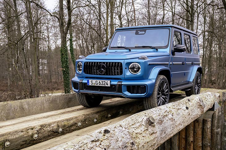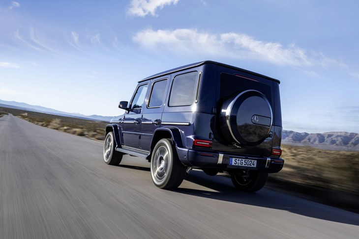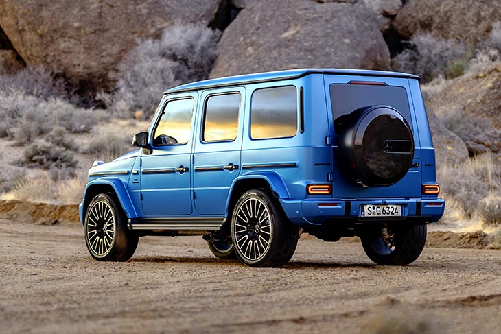 Con 4,82 m de longitud (4,87 m en la variante AMG), la nueva edición de 2024 del Clase G apenas presenta cambios estéticos, manteniendo todas esas aristas, los clasicos tiradores de puertas y la luna casi vertical que lo caracteriza y define como auténtico 4×4 con ya 45 años en el mercado. Lo que sí se ha modificado es la parrilla, ahora con cuatro lamas en lugar de tres, además de los parachoques delantero y trasero, con un nuevo aspecto de ardilla el primero y nuevo diseño el segundo, que reubica en el centro la cámara de marcha atrás (con limpia lente integrado contra la suciedad). También se ha mejorado el revestimiento del pilar A y el labio del spoiler del techo. Trae de serie llantas de 18 pulgadas con diseño de cinco radios dobles, que pueden aumentarse hasta las 20 pulgadas. Se ha añadido el color azul sodalita metalizado y los faros LED también vienen de serie.