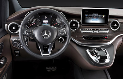 La Clase V de Mercedes (sucesora del actual Viano) cambia su aspecto y se adaptan a la nueva imagen de la marca, mejorando equipamiento y funcionalidades internas. En el habitáculo de este monovolumen grande que llegará en mayo de 2014, el tablero de instrumentación se ha diseñado en dos secciones separadas por un elemento central tridimensional, al tiempo que se ofrece la posibilidad de llevar todo el salpicadero forrado en símil cuero con costuras a contraste. El acabado general y la calidad percibida se aproxima más al nivel de los turismos, con elementos tales como pantalla central independiente, salidas de ventilación circulares, volante multifunción, cambio automático Direct Select (opcional), mandos giratorios en panel central, “touchpad” para control de funciones, etc.
