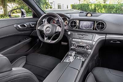 Mejoras mecánicas.- En la mecánica tampoco hay cambios, aunque sí mejoras. Ofrecido con motores V6 y V8 de gasolina (y V8 y V12 biturbo en los AMG), el SL 2016 gana 35 CV en su versión de acceso SL 400, cuyo V6 3.0 pasa de 332 a 367 CV, siempre a 5.500 rpm, ganando además 2 mkg (ahora 51 mkg, constantes entre 1.800 y 4.500 rpm), lo que le autoriza unas prestaciones de auténtico superdeportivo (menos de 5 segundos de 0 a 100 km/h, con la velocidad máxima autolimitada a 250 km/h), y eso con unos consumos muy razonables (7,7 lts/100 km en el promedio combinado, con 175 g/km de CO2).