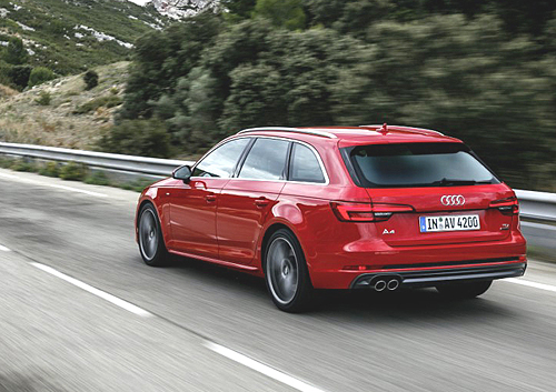 Lo mismo sirve para el volumen útil de maletero, que en el A4 Avant pasa de 490 a 505 litros (15 más, llegando a 1.510 con los asientos traseros abatidos en formato 40/20/40), mientras que en la berlina se mantiene en 480 litros, con la novedad, tanto la tapa en la berlina como el portón en el Avant son de apertura eléctrica (incluyendo este último también el plegado de la bandeja cubreequipajes y también el cierre). De formas muy aprovechables, tanto en la berlina como en el Avant, presenta un piso plano de casi un metro de ancho por otro de fondo, con una leve inclinación al aproximarse a los asientos. Bajo su hueco principal de carga se aloja la batería, colocada de forma tal que cabe una rueda de repuesto de emergencia sobre ella, de serie en las unidades para España.