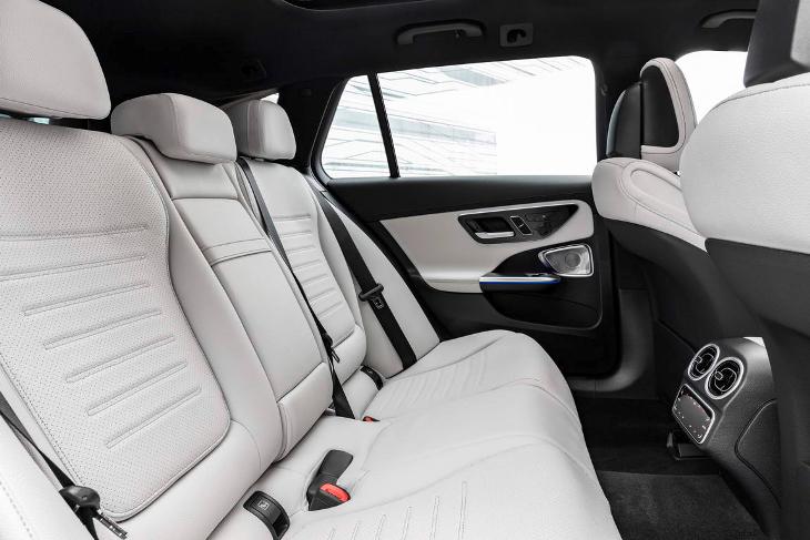 Esta nueva generación cuida mucho la habitabilidad, ganando 2 cm más de espacio para piernas en las plazas traseras y otro centímetro más en el espacio libre al techo y en anchura a la altura de los codos. En cuanto al volumen de maletero, no varía en la berlina (455 litros), subiendo a 490 litros en el familiar Estate (gana 30 litros), ampliables a 1.510 con los asientos traseros abatidos. Sin embargo, en la versión híbrida enchufable se queda en 360 litros en la berlina, como sucede en la actual Clase C. En todo caso, gana volumen útil ya que los actuales Clase C PHEV se conforman con sólo 315 litros de maletero.