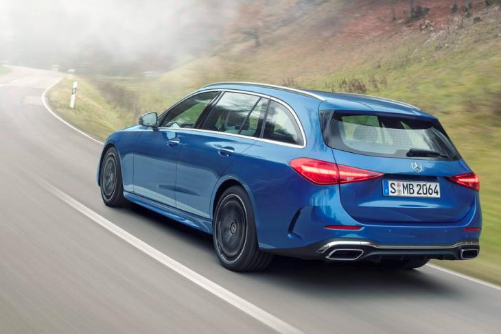 Pero tanto los Clase C berlina como los Estate comparten la misma longitud, anchura, altura (1,7 cm más el Estate por las barras del techo) y distancia de ejes. Por detrás, los grupos ópticos (por vez primera partidos entre tapa de maletero y aletas) recuerdan a los del Clase S, aquí sin perfil cromado entre ambos, más horizontales y finos que antes. El nivel AMG Line luce ahora unas pequeñas estrellas cromadas de tres puntas en diseño «diamante», y tenemos tres nuevos colores de carrocería (azul Spectral, gris metalizado High-Tech y blanco Opal) a los ya existentes, que se mantienen.