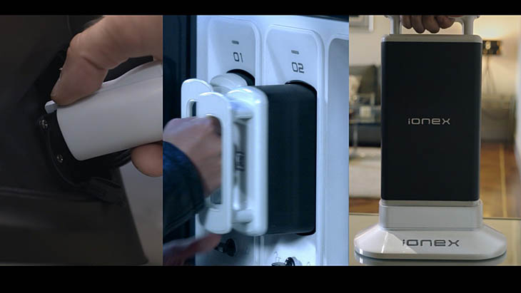 La facilidad de carga, su ventaja.- La atractiva propuesta Ionex se resume en scooters de diseño atractivo que incorporan una batería extraible y portátil de solo 5 kg de peso. Mientras se carga la batería, el vehículo permite seguir la marcha gracias a una batería interna que siempre se mantiene con carga. Las preocupaciones por la autonomía desaparecen al ofrecer un rango de uso de hasta 200 km, teniendo la posibilidad de cargar la batería en el propio domicilio/oficina, en las estaciones de recarga rápida Ionex (en una hora) instalados en los concesionarios y en puntos de recarga de establecimientos privados (sharing economy) y con posibilidad de alquilar baterías extras. En la futura red de carga, se pondrán a disposición de los usuarios intercambiadores de baterías, de múltiples diseños, tamaños y capacidades: desde una estación de reducidas dimensiones para una empresa de logística o un uso comunitario, hasta un intercambiador de grandes dimensiones para una instalación en vías públicas o puntos de elevada concurrencia.