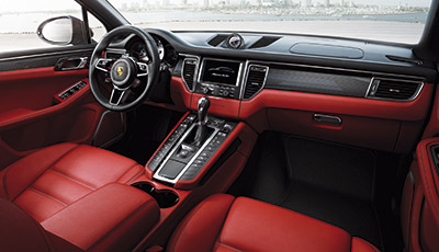 En el interior destaca la posición de conducción, más baja que en el Audi Q5, con la consola central ascendente y el nuevo volante multifunción (de inspiración 918 Spyder), con botones para teléfono, radio y ordenador de a bordo, y las levas del cambio PDK a doble embrague tras sus brazos horizontales. El cuadro presenta tres esferas circulares, con el cuentavueltas en el centro, y al lado derecho hay una pantalla TFT multifunción a color (4,8”), mientras que a la izquierda, como en todos los Porsche, se encuentra el botón de arranque del motor. La palanca de cambio, en la consola, va en posición realzada, con los botones de las funciones principales en la consola central, facilitando su manejo sencillo e intuitivo. El cambio PDK cuenta con función secuencial, con dos posiciones: a la derecha de la palanca para rodar de manera automática, y a la izquierda para cambiar de marcha de modo manual, bien con la palanca, bien por las levas al volante.