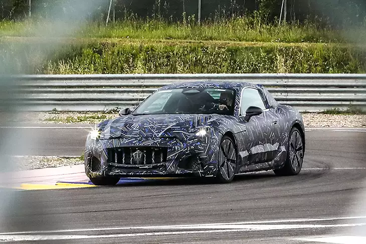 Sin embargo, podemos percibir que en su largo capó los nuevos grupos ópticos siguen los trazos longitudinales de los del Maserati MC20, mientras que la parrilla se muestra con un diseño más redondeado que el modelo saliente, flanqueada por tomas de aire dimensionadas y desplazadas a las esquinas. Sin fotos de la zaga, sí vemos una ocultación deliberada a partir del pilar B, una zona de diseño muy sensible y que a buen seguro dará mucha personalidad a este nuevo coupé de altas prestaciones, uno de los más bonitos en la actualidad y que pone el listón muy alto en esta renovación.