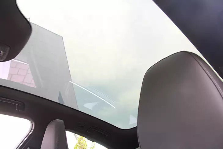 Un detalle curioso es el techo opcional panorámico transparente, que no es practicable sino fijo, pero cuenta con un sofisticado sistema para dejar pasar la luz de modo variable, pudiendo limitarla a voluntad por secciones. Funciona a través de una capa interior de cristal líquido, que contiene en suspensión una serie de partículas metálicas que se ordenan y desordenan a través del paso de una corriente eléctrica, que permite orientar direccionalmente el paso de la luz: si las partículas se sitúan de modo vertical, la luz pasa, y si lo hacen de modo horizontal en el fondo, impiden su paso.