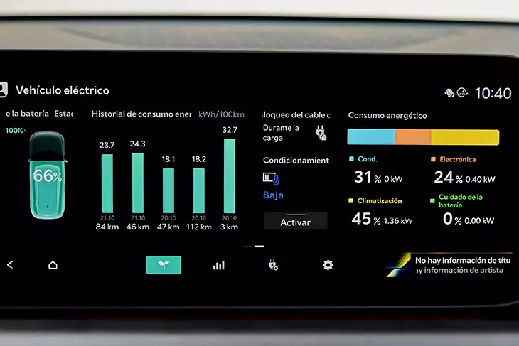 En el primer caso mantuvimos potencias inferiores a la máxima de la infraestructura -de hasta un 12 por ciento- hasta alcanzar el 23 por ciento de la capacidad de la batería; mientras que desde ahí en adelante no sobrepasó en ningún momento los 40 kW. El resultado es, cuando menos, sorprendente en tanto que el EV9 había cubierto con anterioridad al lanzamiento de esta carga un recorrido de 300 km viajando a buen ritmo y la temperatura ambiente era de 18ºC, lo que invalidaba la posibilidad de problemas de temperatura de la batería. Ante lo decepcionante del proceso decidimos interrumpirlo una vez alcanzado el 48 por ciento.