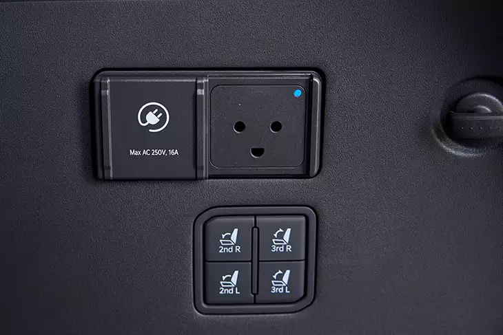 Así mover el Kia EV9 a costa de cargadores de corriente continua puede ser muy costoso y convendrá reservarlo para grandes kilometradas, mientras que en el día a día se usa corriente alterna y es de hasta 11 kW. Y es que con una batería tan grande conviene contar con una red trifásica como recurso de carga habitual, particularmente si queremos resolverla durante la noche, por ejemplo. Este cargador es de tipo bidireccional (V2L), lo que permite transmitir energía no sólo hasta el coche, sino desde él.