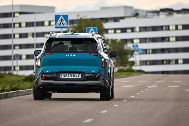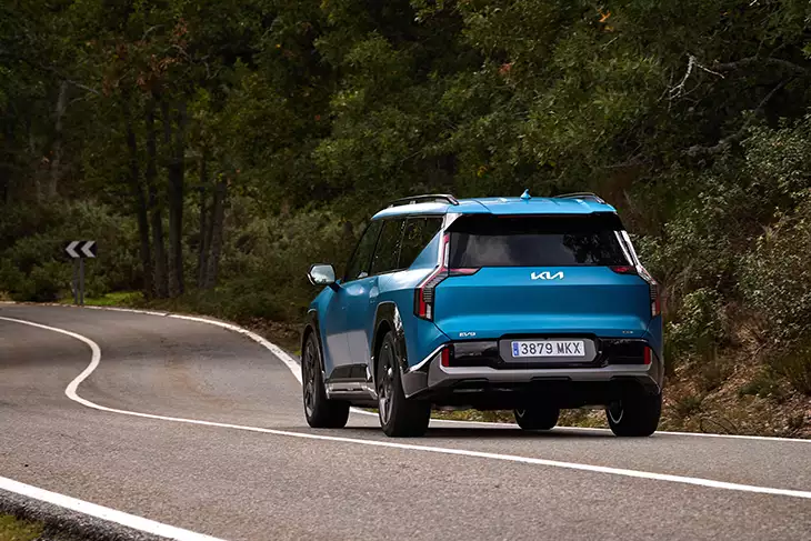 El escenario favorito del EV9 son, como ya habrás adivinado, las vías rápidas. Aquí el mayor enemigo de su comportamiento es el viento lateral, ya que parece inmune al resto de circunstancias y devora kilómetros con pasmosa suficiencia… hasta que toca parar para recargar su batería.