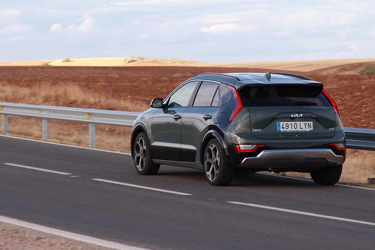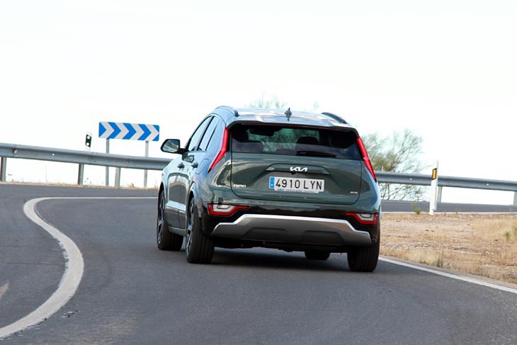 Por último, el comportamiento dinámico de este Niro HEV está a la altura de lo que se espera de un coche familiar. Es muy cómodo sobre piso irregular, filtrando bien los baches, y en autovía se aprecia un rodaje bastante silencioso, donde se oye más el ruido de las ruedas que el del motor de combustión. En terreno virado se muestra bastante ágil, y si queremos disfrutar al máximo de su agilidad merece la pena poner el modo Sport, que también afecta a la respuesta de la dirección y el cambio. Al límite apoya de forma limpia dentro de un previsible subviraje, pero sin extraños de ninguna clase, y pese a su generoso calzado de 225/45 R18 (de serie en este nivel Emotion), absorbe mejor que otros con rueda de más balón los resaltes para quitar velocidad de calles y rotondas.
