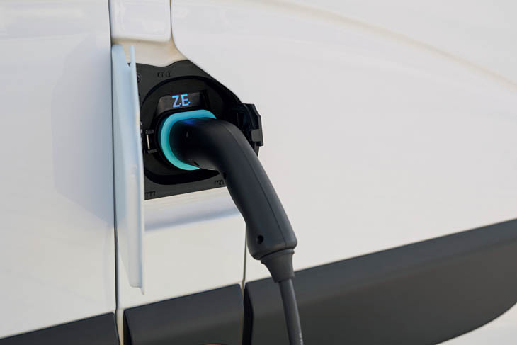 Las baterías están ubicadas bajo el plano de carga, no interfiriendo en la zona interior de carga que es totalmente plana, exceptuando los pasos de rueda. Tienen un peso de 255 kg. El tiempo de recarga completa del ZE a través de una Wallbox de 7,4 Kwh a una intensidad de 32 amperios es de 6 horas. La trampilla de recarga está situada en el lado derecho de la cabina.