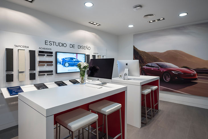 Esta tienda permite a sus visitantes aprender más sobre su reducida gama de modelos: el Model S, el primer sedán 100% eléctrico con una autonomía de hasta 632 km con una sola carga, y el Model X, el primer SUV de la marca, mientras que personal del equipo de Tesla altamente cualificado ofrece a los clientes interesados información, demostraciones y pruebas de conducción de los vehículos eléctricos.
