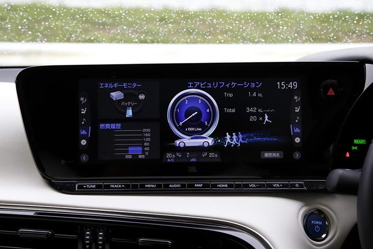 Su beneficioso impacto sobre el medio ambiente va más allá de la ausencia de emisiones, ya que en la práctica, el vehículo limpia el aire al circular, gracias a su filtro catalizador textil, una innovación de Toyota. Por la que al entrar el aire en el vehículo para alimentar la pila de combustible, la carga eléctrica del filtro textil apelmazado (“non woven”) captura las partículas contaminantes de dióxido de azufre (SO2), óxidos de nitrógeno (NOx) y otras partículas de más de dos micras y media, además del 90% de las de menos de 2,5. Vamos que además de no contaminar, limpia el aire cuando rueda: el no va más sobre ruedas…