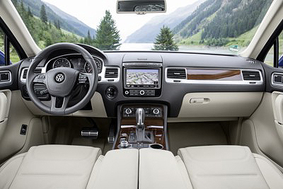 El SUV de alta gama de Volkswagen se ha ganado a pulso su fama de vehículo confortable, dinámico y eficaz en todo tipo de terrenos. Sin embargo, la marca ha reconocido públicamente que su diseño era quizás excesivamente rudo y poco convincente. Para solucionarlo se ha aplicado en sus trazos y con ligeras modificaciones en el frontal y en la zaga ha conseguido aligerar en gran medida su aspecto. Cambia los paragolpes y le dota de perfiles cromados en todo su perímetro, con lo que estiliza su aspecto general. El exterior del nuevo Touareg se complementa con faros bi-xenón de serie, nueva gama de colores más llamativos y llantas de aleación específicas de 18, 19 y 20 pulgadas. También se ofrecen nuevas terminaciones deportivas R y por supuesto interiores con diferentes tapizados y combinaciones de tonos, desde metálicos a madera, pasando por apliques de plástico brillante. Pero con seguridad el cambio más importante afecta a los motores, con propulsores que mejoran su entrega de potencia y disminuyen los consumos. La norma Euro 6 planea sobre todos los cambios.